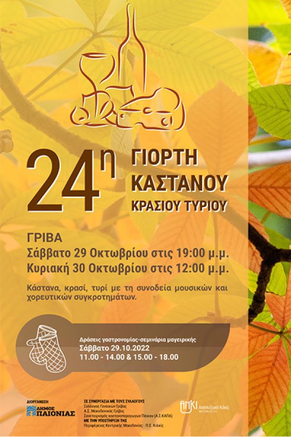 Την εκδήλωση διοργανώνει ο Δήμος Παιονίας σε συνεργασία με τον Σύλλογο Γυναικών Γρίβας, τον Σύλλογο Α.Σ. Μακεδονικό Γρίβας και τον Συνεταιρισμό Καστανοπαραγωγών Πάικου (Α.Σ.ΚΑΠΑ).