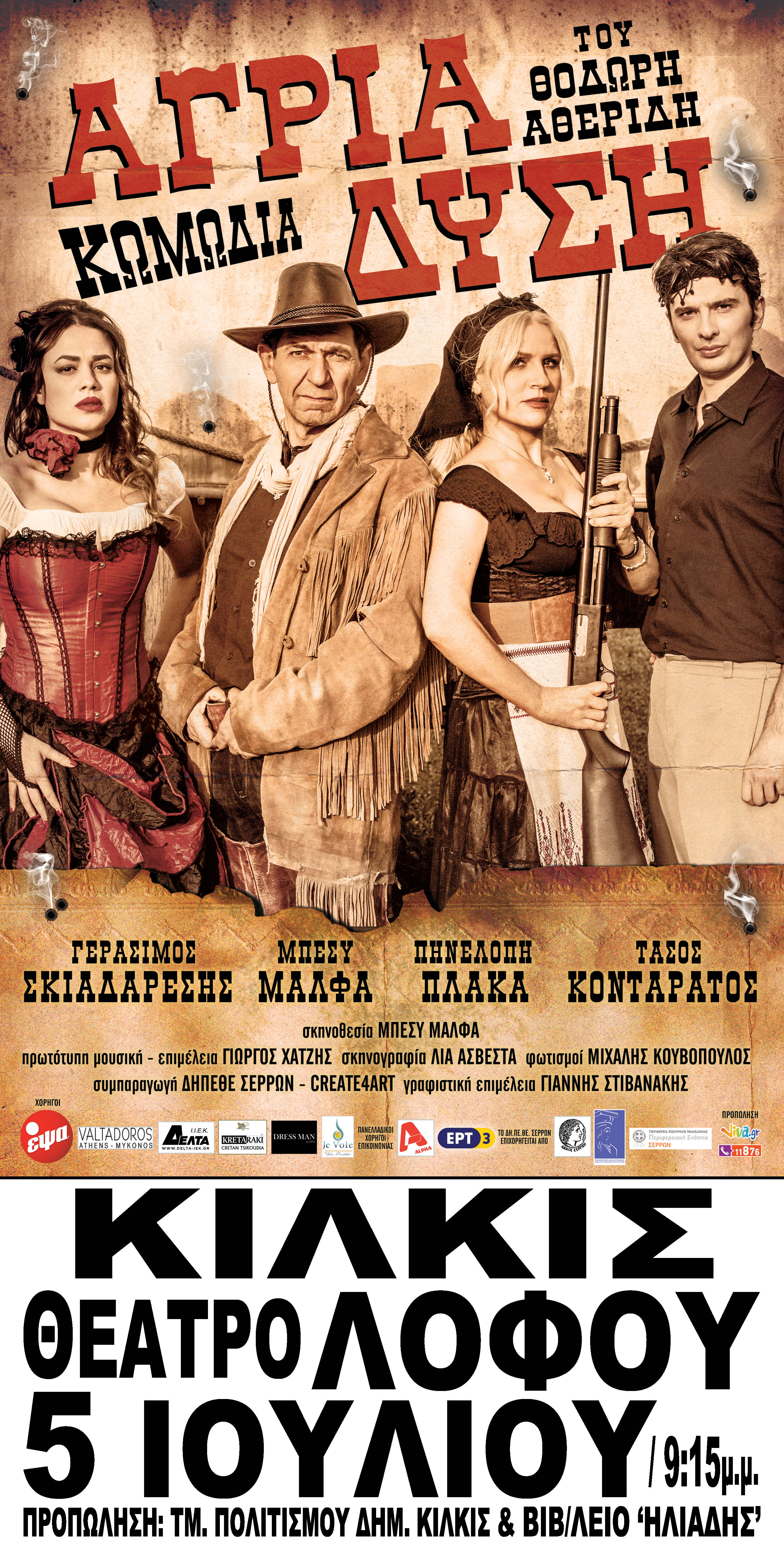 Τούτο το καλοκαίρι η κωμωδία του Θοδωρή Αθερίδη, "Αγρια Δύση" περιοδεύει σε όλη την Ελλάδα. Μία κωμωδία Western με φόντο την Κρήτη, γεμάτη γέλιο, πάθος για τη ζωή, τον έρωτα, την αγάπη και την Ελλάδα!