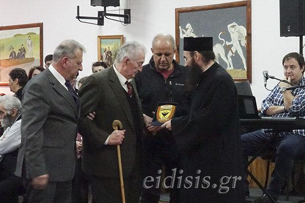 Στην εκδήλωση τιμήθηκαν αριστούχοι μαθητές, τέκνα των εν αποστρατεία μελών, μέλη του Παραρτήματος, ο Πατέρας Αντώνιος Παπανικολάου ιδρυτής και εμπνευστής της μεγάλης οικογένειας της Κιβωτού του Κόσμου και ο Πρωτοψάλτης της Ιεράς Μητροπόλεως Πολυανής και Κιλκισίου κ. Κωνσταντίνος Γαϊτανίδης, για την πολυετή του προσφορά ως Δάσκαλος Βυζαντινής Μουσικής και Ιεροψάλτης.