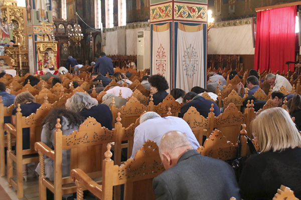 Της Αρχιερατικής Θείας Λειτουργίας προέστη ο Σεβασμιώτατος Μητροπολίτης Πολυανής και Κιλκισίου κ. Εμμανουήλ, πλαισιούμενος από Ιερείς και Ιεροδιακόνους και στη συνέχεια τελέστηκε η Ακολουθία του Εσπερινού, κατά τη διάρκεια της οποίας ανεγνώσθησαν οι ευχές της Γονυκλισίας.