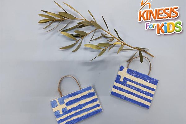 Και η ώρα του "Φτιαξ' το μόνος σου" ήταν αφιερωμένη στην Ελληνική Επανάσταση. Με τα παιδιά μας συζητήσαμε σχετικά με την ελληνική σημαία καθώς και γιατί θεωρείται διπλή γιορτή η 25η Μαρτίου κι έπειτα σηκώσαμε μανίκια, και πιάσαμε τον πλάστη για να ανοίξουμε τον πηλό. Στη συνέχεια κόψαμε στο σωστό μέγεθος και σχήμα τον πηλό μας, χαράξαμε τις γραμμές και συνεχίσαμε με τα πινέλα. Οι αποχρώσεις μας φυσικά μπλε και άσπρο! Το τελειοποιήσαμε προσθέτοντας ένα σχοινάκι για να μπορούμε να το κρεμάσουμε στον τοίχο κι έτοιμο !