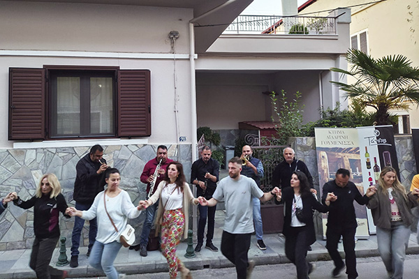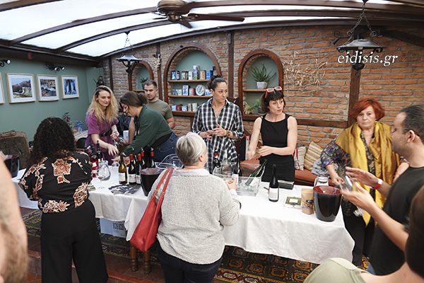 Η Μαρία Μουζούρη του φιλόξενου Ξενώνα Δημοσθένη υποδέχονταν τους φίλους του κρασιού, ενώ η σεφ Τατιανή Κωνσταντινίδη φρόντισε για τη συνοδεία γευστικών προτάσεων.