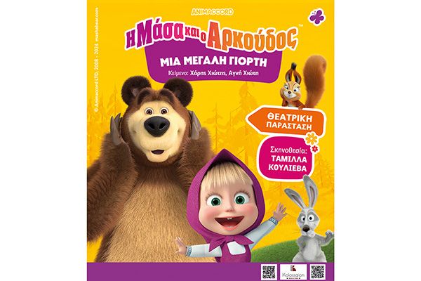 «Η Μάσα και ο Αρκούδος, μια μεγάλη γιορτή» η επίσημη θεατρική παράσταση, ζωντανεύει τον μαγικό κόσμο της παγκόσμιας επιτυχημένης σειράς κινουμένων σχεδίων. Με τα αυθεντικά κοστούμια του εξωτερικού.