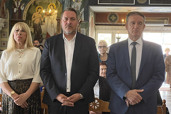 Παρόντες ο τ. Υπουργός Αγροτικής Πολιτικής κ. Γεώργιος Γεωργαντάς, ο υποψήφιος Βουλευτής κ. Πέτρος Παππάς, ο Δήμαρχος Παιονίας κ. Κωνσταντίνος Σιωνίδης, επικεφαλής των κ.κ. Αντιδημάρχων και της Προέδρου του Δημοτικού Συμβουλίου κας Γαρυφαλλιάς Καρβουνιάρη, ο επικεφαλής της δημοτικής μειοψηφίας κ. Χρήστος Γκουντενούδης και ο υποψήφιος κ. Θεόφιλος Τιρεκίδης, ο Πρόεδρος της Δ.Κ. Αξιουπόλεως κ. Κύρος Καλαβάζης, ο Διοικητής της 33ης Μ/Κ Ταξιαρχίας Ταξίαρχος κ. Θεόδωρος Ελευθεριάδης, ο Υποδιευθυντής της Π.Υ. Κιλκίς κ. Χρήστος Γκαντίδης, ο Διοικητής του Α.Τ. Γουμένισσας Αστ. Υποδιευθυντής κ. Αντώνιος Λιακόπουλος.