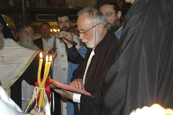 Μετά την ευλογία της αρτοκλασίας και των κολλύβων, χειροθετήσαμε σε αναγνώστες δύο διακρινομένους για τον εκκλησιαστικό τους φρόνημα, αλλά και τον αξιέπαινο ζήλο για το ναό και τα τελούμενα σε αυτόν. Ο ένας εξ αυτών, Κωνσταντίνος Κουτσογιάννης, κατάγεται από την Αξιούπολη. Είναι έγγαμος και πατέρας δύο παιδιών. Πρώην βιοτέχνης, ασχολείται εδώ και τέσσερα χρόνια με το αναλόγιο, εξυπηρετώντας τις ανάγκες των ναών της Μητροπόλεώς μας. Παρακολουθεί μαθήματα βυζαντινής μουσικής στο Ωδείο του Πολυκάστρου. Ο άλλος, Αντώνιος Μιχαλόπουλος, κατάγεται από την πόλη του Αποστόλου Ανδρέα, την Πάτρα. Γιός ιερέα, έγγαμος και πατέρας δύο μικρών παιδιών, υπηρετεί ως στρατιωτικός στο Πολύκαστρο στην 33η Μ/Κ Ταξιαρχία. Τα τελευταία τρία χρόνια προσφέρει τη διακονία του στο αναλόγιο και παράλληλα, τους τελευταίους μήνες του ανατέθηκαν και καθήκοντα εκκλησιαστικού επιτρόπου στην ενορία της Αξιούπολης. Παρακολουθεί επίσης μαθήματα βυζαντινής μουσικής.