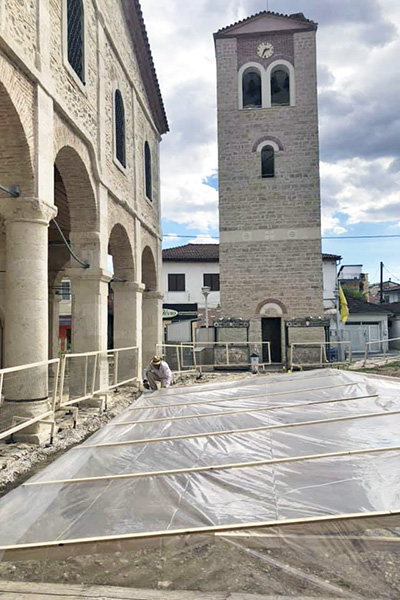 Το έργο των σωστικών αρχαιολογικών ανασκαφών στον περιβάλλοντα χώρο του αγίου Γεωργίου Γουμένισσας, συνεχίζεται, με την κατασκευή απλού στεγάστρου για την προστασία των ιστορικών ευρημάτων.