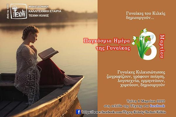 Μείνετε με την Τέχνη την Δευτέρα 8 Μάρτη 2021. Θα βρεθούμε διαδικτυακά στη σελίδα μας στο Facebook: Τέχνη Κιλκίς για να μιλήσουμε για τις γυναίκες του κόσμου.