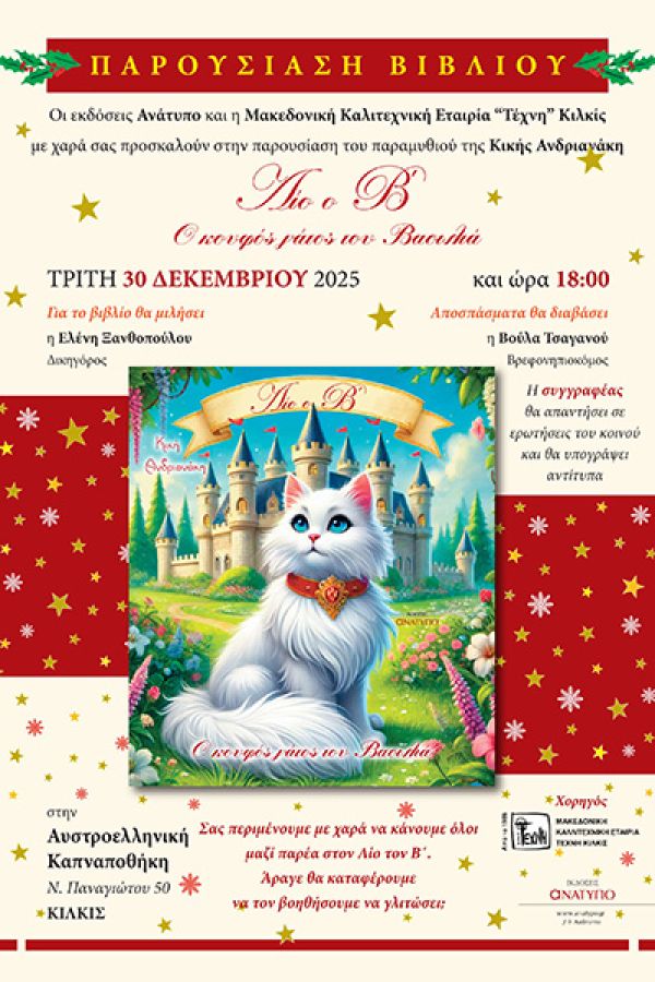 την Τρίτη 30 Δεκεμβρίου 2025, στις 6μ.μ. το απόγευμα, στην Καπναποθήκη της Αυστροελληνικής.