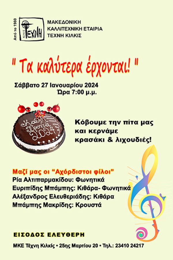 Καλή μουσική, κρασάκι και εδέσματα που οι φίλοι και τα μέλη της Τέχνης θα φτιάξουν για εσάς σας περιμένουν! Θα ανταλλάξουμε σκέψεις, ιδέες και θα κουβεντιάσουμε προτάσεις.