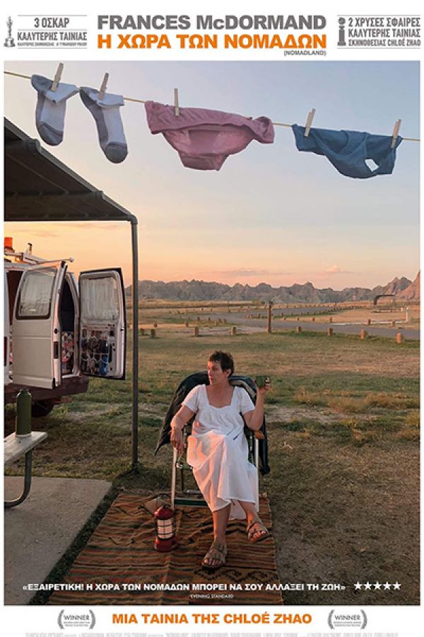 Η πολυαναμενόμενη ταινία της Chloé Zhao «Η ΧΩΡΑ ΤΩΝ ΝΟΜΑΔΩΝ» (Νοmadland) με πρωταγωνίστρια την βραβευμένη με 4 πλέον Όσκαρ Frances McDormand, κυριάρχησε στην 93η τελετή των Όσκαρ κερδίζοντας 3 βραβεία, εκείνο της Καλύτερης Ταινίας, της Καλύτερης Σκηνοθεσίας και του Α΄ Γυναικείου Ρόλου.