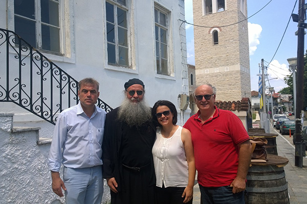 Στη δεύτερη φωτογραφία συνάντηση συνεργασίας και προγραμματισμού δράσεων, με τον καθηγητή του Αλεξάνδρειου Τεχνικού Επαγγελματικού Ιδρύματος Θεσσαλονίκης, πρώην πρόεδρο της κοινότητας Λιβαδίων Φώτη Κιλιπίρη, μετά από τη διεθνή υποστήριξη της Τοπικής Πολιτιστικής Κληρονομιάς στη Βαρκελώνη και την ολοκλήρωση του marketing plan για την συμβολή της Τοπικής Πολιτιστικής Κληρονομιάς στις τοπικές κοινωνίες και την ευρύτερη περιοχή. Επίσης, τον δραστήριο πρόεδρο της Δημοτικής Κοινότητας Γουμενίσσης του Δήμου Παιονίας Αθανάσιο Τραχανίδη και τη νομική σύμβουλο του εγχειρήματος Χριστίνα Χαραλαμπίδου της οικογένειας Ελένης Γ. Αθανασιάδη.