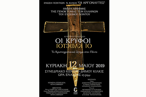 Με αφορμή την Ημέρα Μνήμης της Γενοκτονίας των Ελλήνων του Ευξείνου Πόντου, η Ένωση Ποντίων ν. Κιλκίς διοργανώνει σχετική εκδήλωση με θέμα: ΟΙ ΚΡΥΦΟΙ-ΟΙ ΚΛΩΣΤΟΙ.