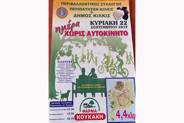 Ημέρα χωρίς αυτοκίνητο την Κυριακή 22 Σεπτεμβρίου στο Κιλκίς διοργανώνει ο Περιβαλλοντικός Σύλλογος Περιπατητών Κιλκίς, σε συνεργασία με το Δήμο Κιλκίς, μ' ένα συμβολικό περίπατο 4,4 χλμ μέσα στην πόλη.