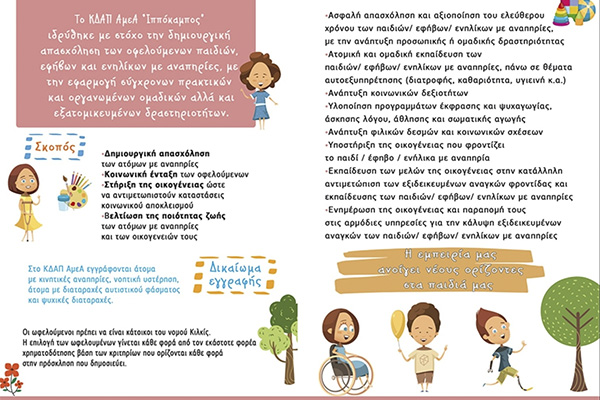 Ο σκοπός του ΚΔΑΠ AΜΕA Κιλκίς «Ιππόκαμπος» είναι η δημιουργική απασχόληση των ωφελούμενων παιδιών, εφήβων και ενηλίκων με αναπηρίες με την εφαρμογή σύγχρονων πρακτικών και οργανωμένων ομαδικών και εξατομικευμένων δραστηριοτήτων.