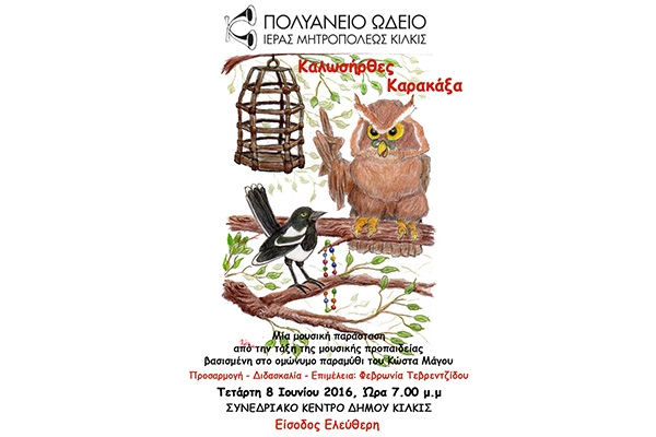 Οι 55 μικροί μαθητές του Τμήματος θα παρουσιάσουν στο Συνεδριακό Κέντρο του Δήμου Κιλκίς, την μουσική παράσταση «Καλωσήρθες Καρακάξα», που είναι βασισμένη στο ομώνυμο παραμύθι του Κώστα Μάγου. Πρόκειται για μια ιστορία που μέσα από τη διδασκαλία της, βοήθησε τα παιδιά να γνωρίσουν τους τρόπους με τους οποίους δημιουργούνται και αναπαράγονται οι προκαταλήψεις, καθώς και τις συνέπειες που έχουν στη ζωή όλων μας.