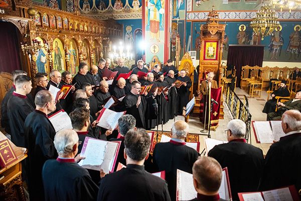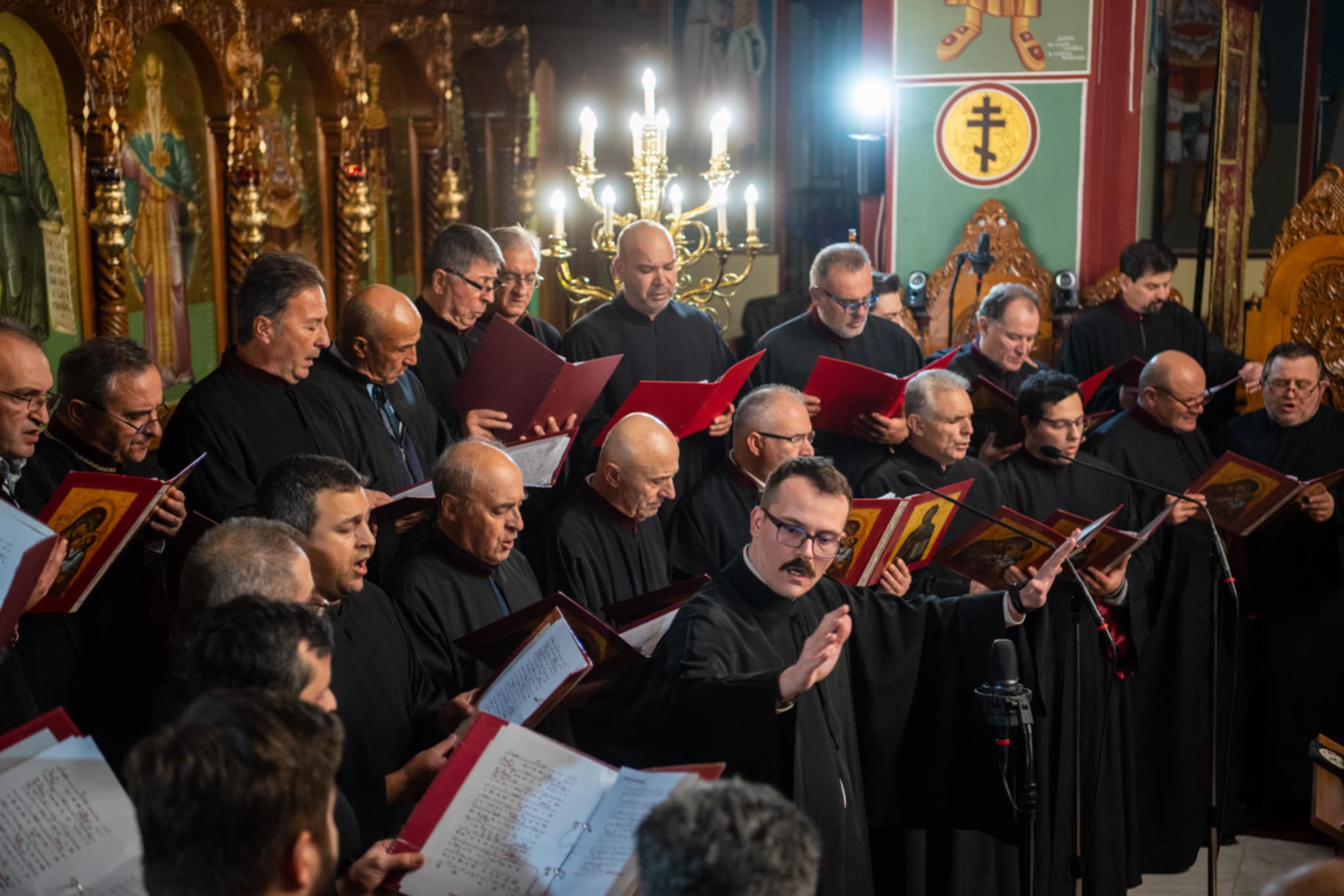 Με χοράρχη τον Θεόφιλο Κάκαρη, η χορωδία του ‘’Πέτρου του Γλυκέως’’ απέδωσε εξαιρετικά ύμνους και τροπάρια των πολιούχων Αγίων ΠεντεκαίΔεκα Μαρτύρων και των Χριστουγέννων.