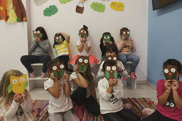 Όλη αυτή τη σοφία που αποκτήσαμε μέσα από τις παραπάνω δραστηριότητες την αποτυπώσαμε μέσα από το πιο σοφό πουλί, την κουκουβάγια, την οποία και κατασκευάσαμε στην ώρα των εικαστικών. Παράλληλα, οι μικροί μας καλλιτέχνες, αφού έπιασαν τα ψαλίδια τους, είπαν να μη σταματήσουν εκεί. Έτσι, ξεκίνησαν να κόβουν και να κολλάνε με αποτέλεσμα να δημιουργήσουν ένα δέντρο παρέα με ένα σκιουράκι, μία κουκουβάγια και ένα κοριτσάκι πάνω σε κούνια. Αυτή η φθινοπωρινή σύνθεση μας καλωσορίζει πλέον από την είσοδο της δομής μας.