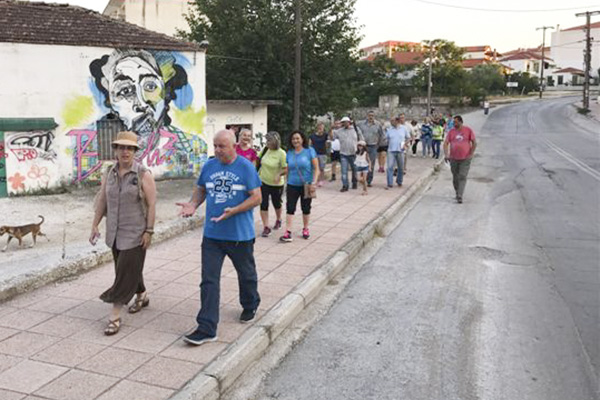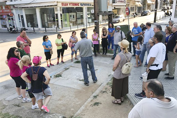 Αρχή οδού Θεσσαλονίκης, στοά, αντλιοστάσιο, Λουτρό, Πολυτεχνείου, πεζόδρομος, παιδική χαρά στην θέση του χτιστού πλακοσκεπούς οχετού και των πηγαδιών, βρύση Σαλάτς, κρυονέρι επί της Ν. Παναγιώτου και Μεσημβρίας, πλάτανος με βρύση Τσιρογιάννη και Ν. Παναγιώτου οι στάσεις του περιπάτου. Οι κ. Αγνού Ελευθερία και Τερζοπούλου Σοφία μαζί με τον Gaveman Μακρίδη Βασίλη θυμήθηκαν και περιέγραψαν υδάτινες εικόνες από τα παιδικά τους χρόνια.