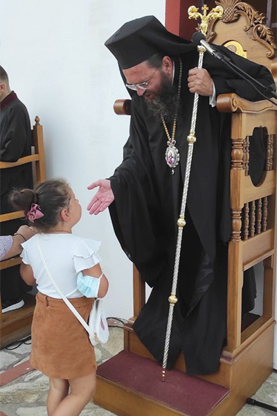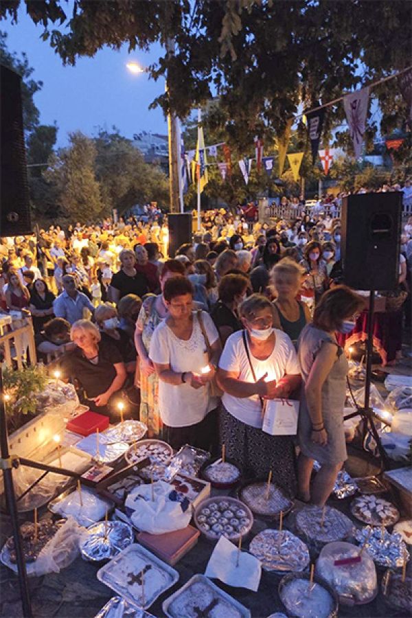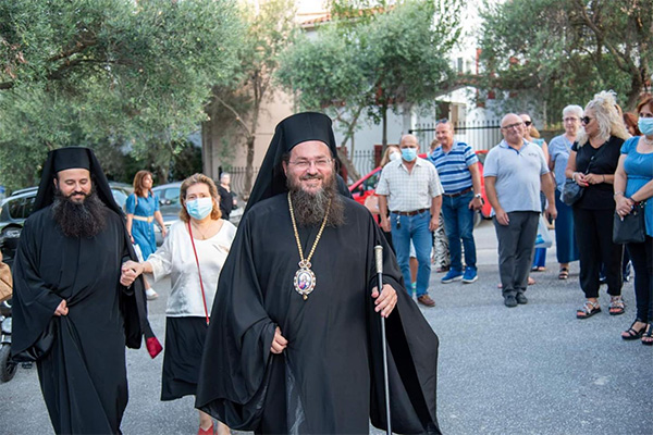 Στον πανηγυρικό Εσπερινό, που τελέσθηκε το εσπέρας της Παρασκευής 26 Αυγούστου 2022, χοροστάτησα, πλαισιούμενος από Ιερείς της πόλεως και Ιεροδιακόνους, παρουσία του κληρικού π. Νικολάου Πιλιτσόπουλου, τον οποίο προσεφώνησα καταλλήλως αναφερόμενος στην καλή μαρτυρία που δίνει όλα αυτά τα χρόνια από το Παρεκκλήσι του Αγίου και την θυσιαστική του αγάπη.