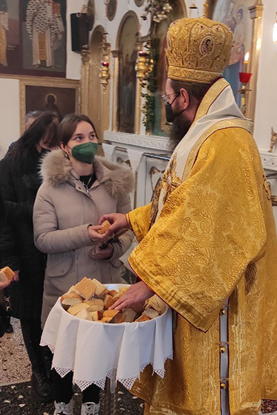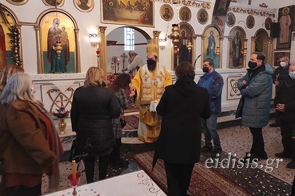 Μετά το πέρας της Θείας Λειτουργίας ο Σεβασμιώτατος έδωσε το αντίδωρο και μίλησε σε όλο το εκκλησίασμα, περιδιαβαίνοντας τους δρόμους του χωρίου.