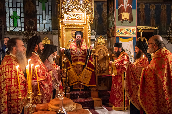 Της Αρχιερατικής Ιεράς Αγρυπνίας προέστη ο Σεβασμιώτατος Μητροπολίτης Πολυανής και Κιλκισίου κ. Βαρθολομαίος, πλαισιούμενος από Ιερείς και Ιεροδιακόνους της Ι. Μητροπόλεως ενώ τους θαυμάσιους ύμνους απέδωσε χορός Ιεροψαλτών υπό τον Μουσικολογιώτατο Καθηγητή κ. Κωνσταντίνο Γαϊτανίδη.