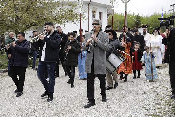 Κατά τη λιτάνευση των ιερών λειψάνων, τιμητικά συνόδευαν τα περίφημα “Χάλκινα” της Γουμένισσας παιανίζοντας θριαμβευτικά και ενθουσιωδώς το “Χριστός Ανέστη”.