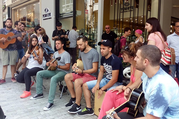 Παίζοντας έντεχνα και ρεμπέτικα τραγούδια, κατάφεραν σύντομα να κάνουν το σημείο έναν μικρό συναυλιακό χώρο, με τους ηλικιωμένους να δακρύζουν από την επιλογή των τραγουδιών και τους τουρίστες να χορεύουν, και πέρα από το χειροκρότημα, εισέπραξαν και τα συγχαρητήρια όσων παρακολουθούσαν. «Μου άρεσε που μπόρεσα να χαρίσω στον κόσμο κάποια μηνύματα μέσω της μουσικής, διότι έβλεπα παππούδες και γιαγιάδες που άκουγαν τις επιλογές που κάναμε στα τραγούδια και έδιναν συγχαρητήρια», λέει ενθουσιασμένη η μικρή βιολίστρια, η οποία παρεμπιπτόντως μέχρι τώρα δεν είχε τύχει να παίξει μουσική στο δρόμο.
