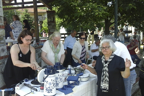 Γυναίκες του χωριού, είχαν στήσει γύρω από το όμορφο κιόσκι, πάγκους και τραπέζια, όπου με μεγάλη τάξη, πολύ χαρά και χαμόγελο προσέφεραν σε όλους παραδοσιακά εδέσματα, που ετοίμασαν και έφεραν από τα σπίτια τους.