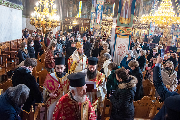 Του Όρθρου και της πανηγυρικής Αρχιερατικής Θείας Λειτουργίας, η οποία ετελέσθη το πρωί της Κυριακής, 13 Μαρτίου ε.έ., στον Ιερό Μητροπολιτικό Ναό Μεταμορφώσεως του Σωτήρος Κιλκίς, προέστη ο Σεβασμιώτατος Μητροπολίτης Πολυανής και Κιλκισίου κ. Βαρθολομαίος, πλαισιούμενος από τους Εφημερίους του Ναού και τους Διακόνους του, ενώ μεταξύ του πολυπληθούς Εκκλησιάσματος παρέστησαν ο Αντιπεριφερειάρχης Κιλκίς κ. Ανδρέας Βεργίδης, ο Δήμαρχος Κιλκίς κ. Δημήτριος Κυριακίδης, ο Διοικητής της 71ης Α/Μ Ταξιαρχίας "Πόντος" Ταξίαρχος κ. Βασίλειος Τσάμης με αντιπροσωπεία Αξιωματικών καθώς επίσης και εκπρόσωποι Φορέων της πόλεως.