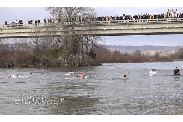 Στον Αξιό ποταμό ο εορτασμός έγινε στις 11:30 το πρωί, στη γέφυρα Αξιούπολης – Πολυκάστρου, χοροστατούντος του Μητροπολίτη Γουμενίσσης κ. Δημητρίου, όπου παραδοσιακά στα νερά του ποταμού ρίχνουν το Σταυρό οι ενορίες της Αξιούπολης και του Πολυκάστρου. Στα παγωμένα νερά του Αξιού έπεσαν για να πιάσουν τους Σταυρούς των δυο ενοριών συνολικά εννέα τολμηροί νέοι.