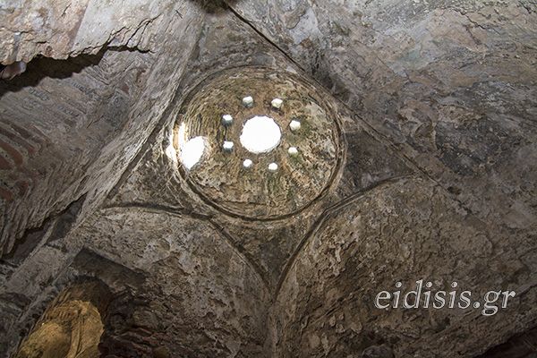 Στην τοιχοποιία του διακρίνεται το δίκτυο σωληνώσεων για την υδροδότηση και την θέρμανσή του, καθώς και οι εσωτερικοί αεραγωγοί, ενώ τμήματα υποκαύστων σώζονται σήμερα στους θερμούς χώρους. Ο περιορισμένος φωτισμός του από αστεροειδείς φωτιστικές οπές στην ανωδομή, φραγμένες με γυαλί παλαιότερα, διαγράφει την μυστηριακή, υδάτινα ομιχλώδη ατμόσφαιρα που θα είχε ο χώρος κατά τη χρήση του.