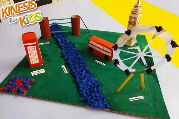 Μια ακόμα θεματική που εξετάσαμε ήταν τα αξιοθέατα της Μεγάλης Βρετανίας. Οι μαθητές μεταφέρθηκαν εικονικά σε μεγάλες πόλεις της Αγγλίας, έμαθαν τα ονόματα τους και τα σημαντικότερα μνημεία τους και τέλος έφτιαξαν μια μικρογραφία του Λονδίνου σε τρισδιάστατη μορφή.