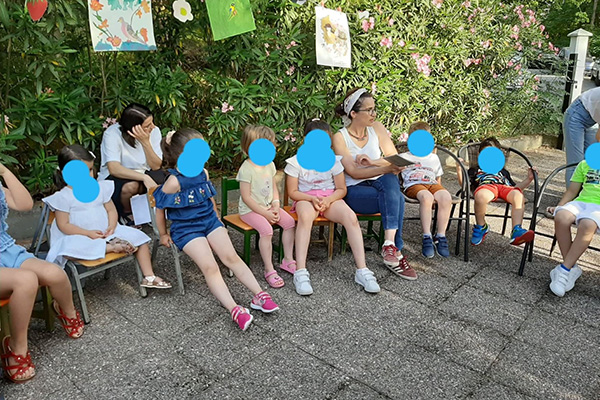 -Η Δάφνη Παπαδοπούλου, γενική γραμματέας της Τέχνης με τη βοήθεια της Μάρθας Αραβίδου, εκπαιδευτικού, αφηγήθηκε το αγαπημένο της παραμύθι “Ο ραφτάκος των λέξεων”, του Αντώνη Παπαθεοδούλου στο πλήθος των παιδιών και ακολούθησε παιχνίδι με λέξεις για τα κουστούμια του ραφτάκου.