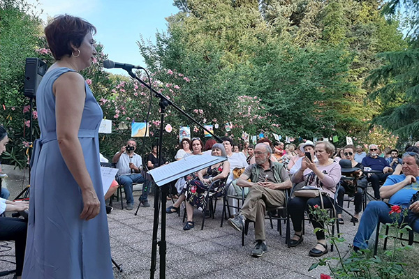 Τα αποκαλυπτήρια της εγχάρακτης πέτρας με τα ονόματα των αείμνηστων εραστών της Τέχνης ακολούθησε μια μικρή μουσική περιπλάνηση με τραγούδια που αγαπούσε η Κική και ερμήνευσε υπέροχα η Μαρία Κιορπελίδου ενώ στο πιάνο τη συνόδεψε η εξαιρετική Ρόζα Αβραμίδου.