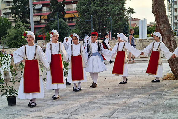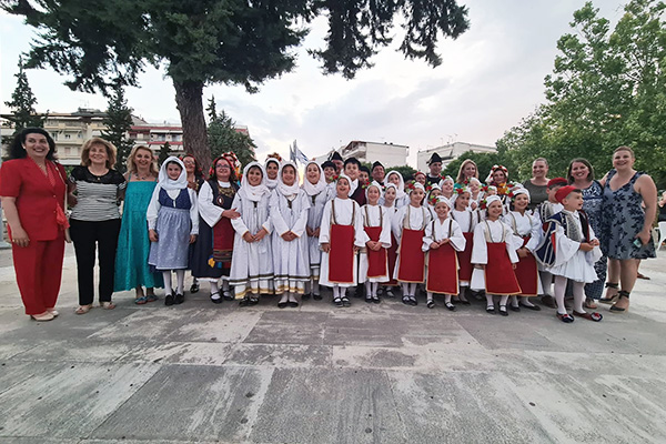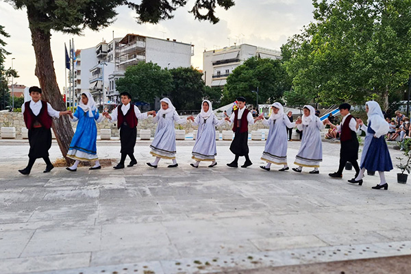 Καθώς έπεφτε το σούρουπο το περασμένο Σάββατο στο μικρό Θέατρο του Δημοτικού Πάρκου - Κήπου οι χορεύτριες των παιδικών τμημάτων ντυμένες με τη φορεσιά της Αράχωβας και στη συνέχεια με τη νησιώτικη στολή της Πάρου μαζί με τους συνομηλίκους συνοδούς τους κι αυτούς ντυμένους με την παραδοσιακή στολή του τσολιά και τη νησιώτικη ‘’έδωσαν ξανά τα χέρια’’, ξανασμίγοντας ύστερα από τρία χρόνια αναγκαστικής απουσίας εξαιτίας της πανδημίας, και χόρεψαν με μοναδικό τρόπο τραγούδια από την Ήπειρο και τα νησιά. Μαζί τους ήταν και το τμήμα ενηλίκων που παρουσίασε χορούς από τη Θράκη.