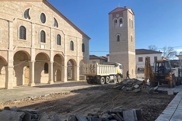 Σε άριστες συνθήκες συνεργασίας με όλες τις εμπλεκόμενες αρχές, συνεχίζονται οι εργασίες του έργου: «Διαμόρφωση του περιβάλλοντος χώρου του Μητροπολιτικού Μνημειακού Ιερού Ναού αγίου Γεωργίου Γουμενίσσης», υπό την επιτυχημένη επίβλεψη των υπηρεσιών του Υπουργείου Πολιτισμού, δηλαδή της ΔΑΒΜΜ (Διεύθυνση Αναστήλωσης Βυζαντινών και Μεταβυζαντινών Μνημείων) και της Εφορείας Αρχαιοτήτων Κιλκίς, καθώς και την επιμελημένη υλοποίηση, από τον ανάδοχο του έργου.