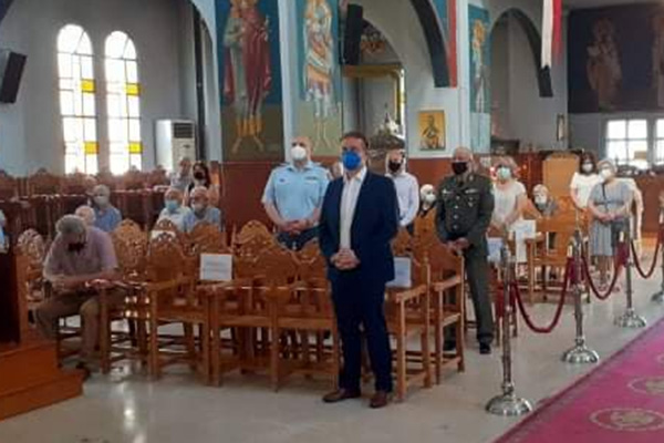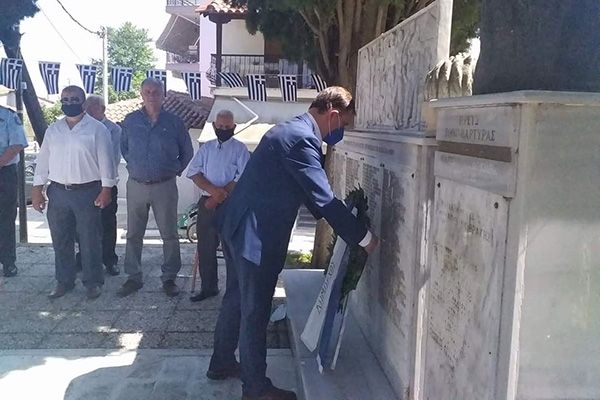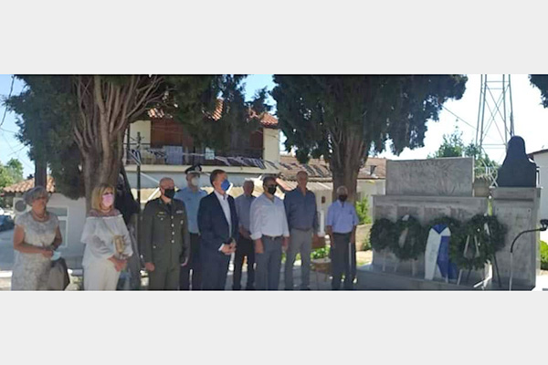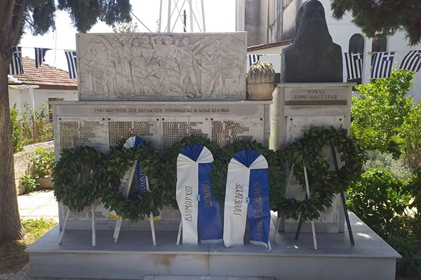 Στην συνέχεια στο Μνημείο Σφαγιασθέντων στον αύλειο χώρο του Ι.Ν. τελέσθηκε επιμνημόσυνη δέηση και κατάθεση στεφάνων.