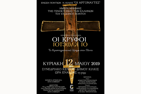 Με αφορμή την Ημέρα Μνήμης της Γενοκτονίας των Ελλήνων του Ευξείνου Πόντου, η Ένωση Ποντίων ν. Κιλκίς διοργανώνει σχετική εκδήλωση με θέμα: ΟΙ ΚΡΥΦΟΙ-ΟΙ ΚΛΩΣΤΟΙ. Στην εκδήλωση θα παρουσιαστούν κείμενα σε επιμέλεια της κας Σαββίδου Λένας τα οποία καταγράφουν διαχρονικά και αναδεικνύουν το Κρυπτοχριστιανικό ζήτημα στον Εύξεινο Πόντο από της Αλώσεως της Τραπεζούντας και εντεύθεν.