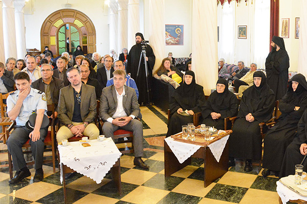 Εν συνεχεία μέσα σε μια κατανυκτική ατμόσφαιρα στο μεγάλο Αρχονταρίκι της Μονής ομίλησε η Καθηγήτρια Φιλοσοφικής κ. Ζωή Γκενάκου με θέμα: «Κρυπτοχριστιανοί: Το σύγχρονο θαύμα της πίστεως στις Αλησμόνητες Πατρίδες».