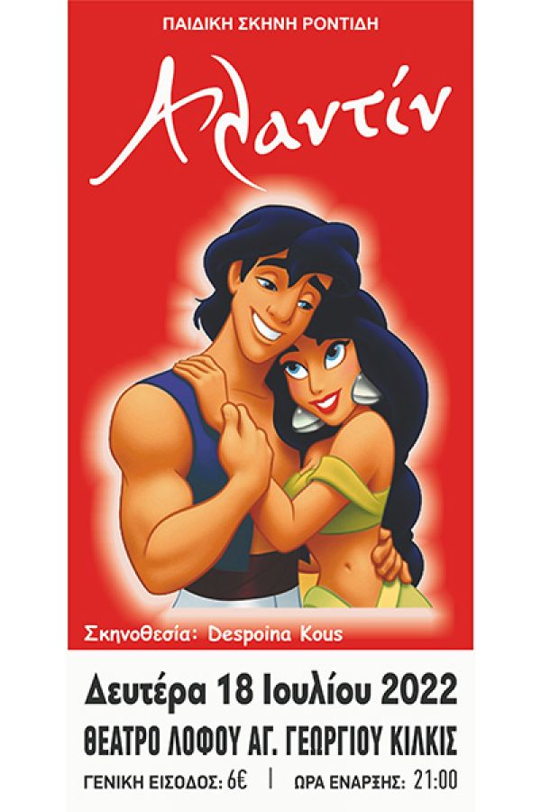 Η Παιδική Σκηνή Ροντίδη παρουσιάζει στις 21:00 στο Θέατρο Λόφου Αγίου Γεωργίου την παράσταση ‘’Αλαντίν’’.