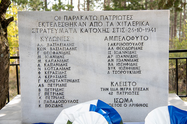 Σήμερα, 22 Οκτωβρίου 2022 ήρθαμε εδώ στον ιερό τούτο χώρο για να απευθύνουμε προς τους εκτελεσθέντες από τα Γερμανικά στρατεύματα την προσευχή μας για την αιώνια ανάπαυση των ψυχών τους.