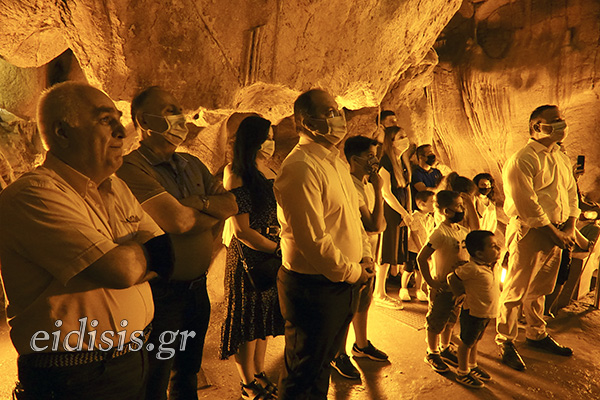 Περιχαρής και συγκινημένος ο Βασίλης Μακρίδης οδήγησε τους εκλεκτούς επισκέπτες του, μεταξύ αυτών το Δήμαρχο Κιλκίς Δημήτρη Κυριακίδη τον αρχιμανδρίτη π. Επιφάνιο Θεοδωρίδη, τον ιερέα Ευστάθιο τον Πρόεδρο του Δημοτικού Συμβουλίου Παύλο Θωμαϊδη, τον Αντιδήμαρχο Θεμιστοκλή Κοσμίδη, τους δημοτικούς συμβούλους Γιώργο Κεμανίδη, Δημήτρη Τσαντάκη την καθηγήτρια Γεωλογίας – Παλαιοντολογίας του ΑΠΘ Ευαγγελία Τσουκαλά, τον πρώην Δήμαρχο Κιλκίς Δημήτρη Τερζίδη, εκπροσώπους φορέων και πολίτες, στο κέντρο της δικής του γης μυώντας τους στον θαυμαστό υγρό κόσμο του Σπηλαίου με τους στενούς διαδρόμους και τους κοραλλιογενείς σχηματισμούς. Οι περιηγηθέντες μπήκαν στους επισκέψιμους θαλάμους και το βλέμμα τους περιπλανήθηκε στις παράξενες εκείνες μορφές, δημιουργήματα του σταλακτικού και σταλαγμικού διακόσμου, που βρίσκονται κρυσταλλωμένες στους τοίχους και στις οροφές του Σπηλαίου.