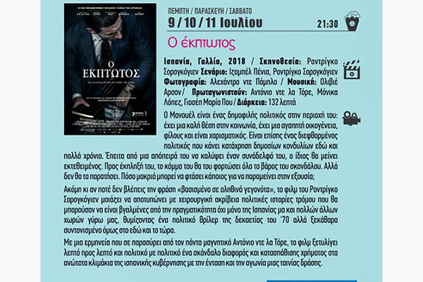 Θα ακολουθήσουν άλλες δύο προβολές της ταινίας, την Παρασκευή 10 και το Σάββατο 11 Ιουλίου με ώρα έναρξης στις 21:30.