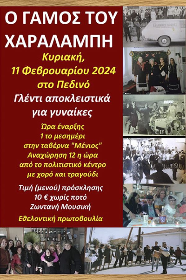Το παραδοσιακό έθιμο «Ο γάμος του Χαραλάμπη» θα πραγματοποιηθεί στο Πεδινό, μέσα από μια εθελοντική πρωτοβουλία κατοίκων.