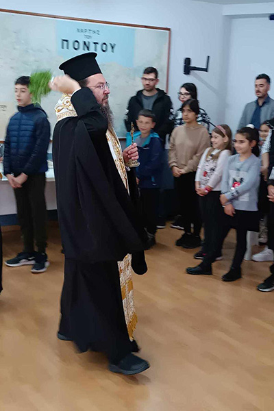Είχε για άλλη μια φορά την ευκαιρία να ενημερωθεί για τις πλούσιες δράσεις του Συλλόγου και να ευλογήσει τα πρόσωπα όλων, Μελών της Διοίκησης και Μελών του Συλλόγου, εξαίροντας τον ουσιαστικό ρόλο που διαδραματίζουν στην διάσωση και την διατήρηση της παράδοσης, κρατώντας παράλληλα την ζωντανή τη μνήμη των προγόνων του Πόντου που γνώρισαν τον ξεριζωμό, τον πόνο και τον θάνατο.