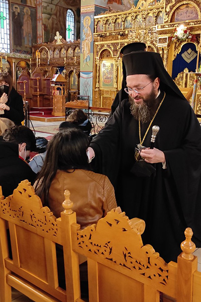 Αντιπροσωπεία είκοσι παιδιών, από τον σύλλογο "ΒηματίΖΩ", ο οποίος διατηρεί στέγες υποστηριζόμενης διαβίωσης, κέντρο διημερεύσεως και ημερήσιας φροντίδας καθώς και εργαστήρια φυτικής παραγωγής και δημιουργικής απασχόλησης, θέλησε να προσφέρει γλυκίσματα στον νέο Μητροπολίτη.