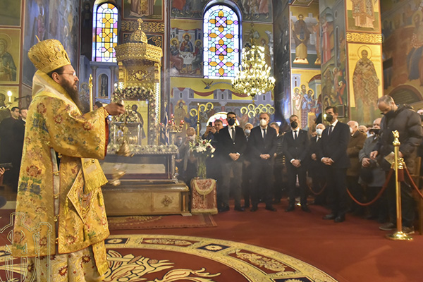 Ὁ Σεβασµιώτατος πρὸ τῆς ἀπολύσεως εὐχαρίστησε ἐνθέρµως, τὸν Παναγιώτατο Μητροπολίτη Θεσσαλονίκης κ.κ. Ἄνθιµο γιὰ τὴν συµµετοχῆ του στὴν Ἱερᾶ Πανήγυρι τῆς τοπικῆς µας Ἐκκλησίας