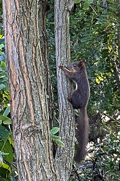 Όταν μάλιστα η Σπυριδούλα Φαχουρίδου είχε την ευγενή καλωσύνη να μας πλουτίσει με δυο ΦΩΤΟ από μια άλλη χαριτωμένη παρουσία στο παραποτάμιο αλσύλλιο. Ο αναβάτης σκίουρος -να τον βαφτίσουμε Νώντα;- μόνιμος κάτοικος του πανέμορφου φυσικού τοπίου, δροσίζει τα μάτια των περαστικών. Κι αν κοντοσταθούν στο πλάι του δρόμου θα απολαύσουν εικόνες σαν κι αυτές που καταχωρίζουμε σήμερα.