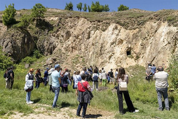 Η πρώτη φάση της δράσης περιλάμβανε τη γνωριμία των περίπου 75 συμμετεχόντων με τα αρχαία μεταλλεία χαλκού- χρυσού στη Βάθη, στην κοιλάδα του χρυσοφόρου Εχέδωρου (νυν Γαλλικός π.), μόλις 5 χλμ από την ανθηρή αρχαία πόλη στο Παλατιανό. Το υπέδαφος της περιοχής φιλοξενεί μεγάλο αριθμό κοιτασμάτων ευγενών, βασικών και σπάνιων μετάλλων, γνωστά ήδη από την αρχαιότητα, όπως μαρτυρούν τα διάσπαρτα αρχαία μεταλλεία. Οδηγοί μας σε αυτό το ταξίδι γνώσης ήταν ο Αν. Καθηγητής Ορυκτολογίας-Πετρογραφίας και Οικονομικής Γεωλογίας του ΑΠΘ Δρ Βασίλης Μέλφος και ο υποψ. Δρ Χρήστος Στέργιου.