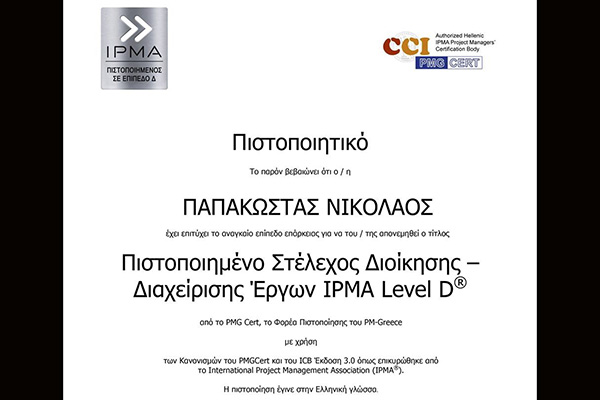 Πιστοποιημένο στέλεχος στη Διοίκηση-Διαχείριση Έργων με διεθνή αναγνώριση IPMA (International Project Management Association) είναι πλέον ο Πατέρας Χριστόδουλος Παπακώστας (κατά κόσμον Νικόλαος) της Μητρόπολης Γουμενίσσης.